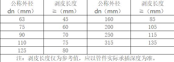 步驟二:徑向切割:用專用切割機(jī)切斷鋁合金襯塑複合管材,切麵(斷麵)應平齊垂直於管(guǎn)材軸線,電熔連接剝皮長度見表2。