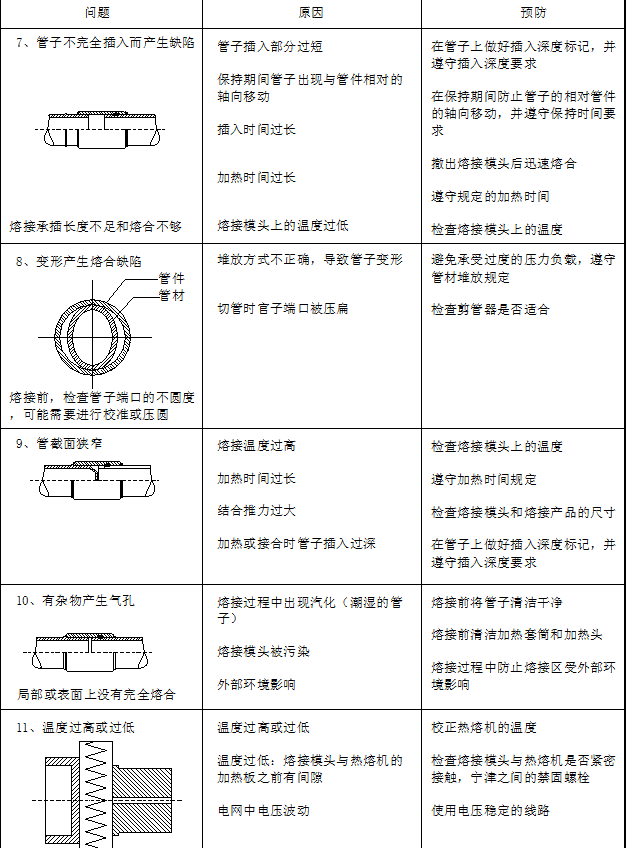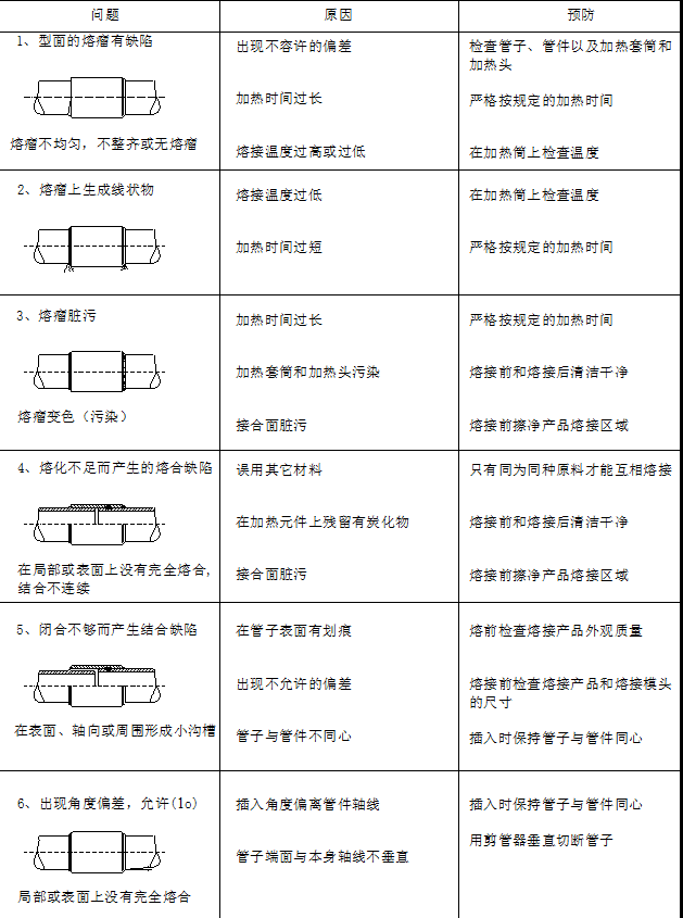 下表列出熔接過程中可能出現的(de)熔接問題和(hé)相應的預防方法: